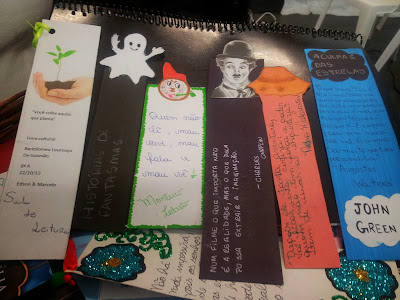 Teve também uma cesta com os títulos de livros. Marcadores de páginas, estilizados, entre eles um com a figura simpática do velho Chaplin. E nesta sala, um canto da literatura de terror. Bem caracterizada. Tudo convidava à leitura.