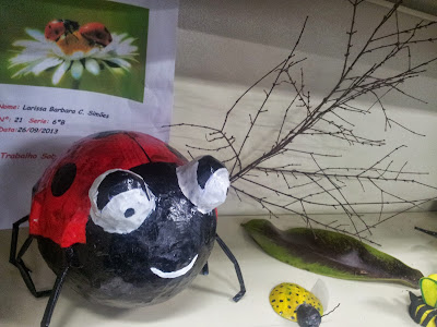 Acompanhado pela diretora fui visitando as salas. Os corredores também estavam ornados com produções dos alunos, mas dentro das salas tínhamos uma coisa fundamental, a monitoria dos alunos que explicavam sobre seus trabalhos. Numa das salas, por exemplo, os alunos apresentaram os trabalhos feitos com material reciclado. Nesta sala, algumas mães tinham opiniões divididas sobre os objetos mais bonitos e criativos. Na dúvida ia fotografando tudo que achava bonito. Os palhaços, os coelhos e o pingüim, preferido por um dos alunos visitantes.